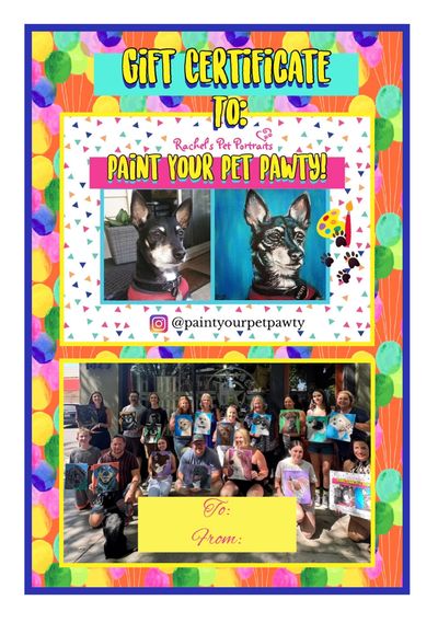 Gift Certificates Available anytime of the year! There are Gift Certificates for any βPaint Your Pet Pawty!β Gift Certificates also available fur any size Commissions as well! Have a look at the Order page! What a pawfect gift! πΎβ€οΈ
